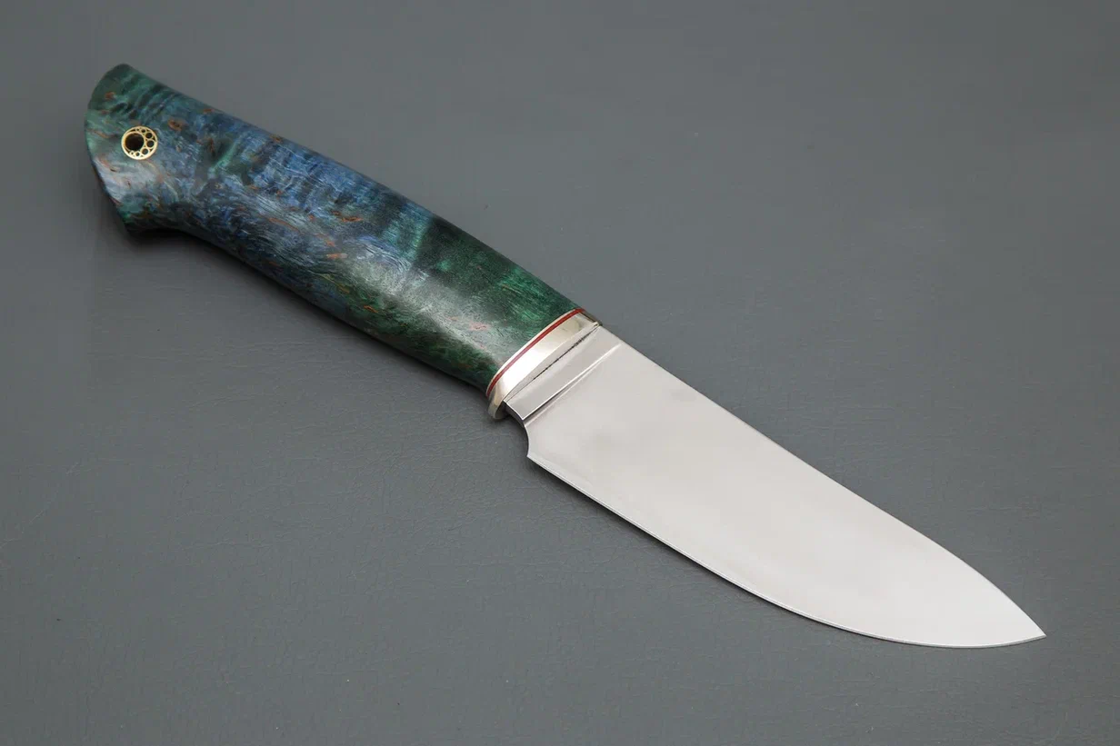 Нож Кайман ст.М390 мельхиор, рукоять карельская береза